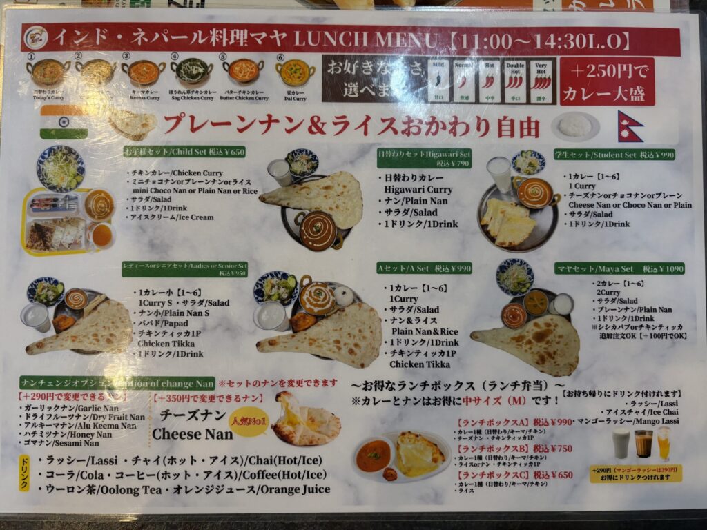 インド・ネパール料理マヤは、美味しいネパールカレーが食べられるお店。