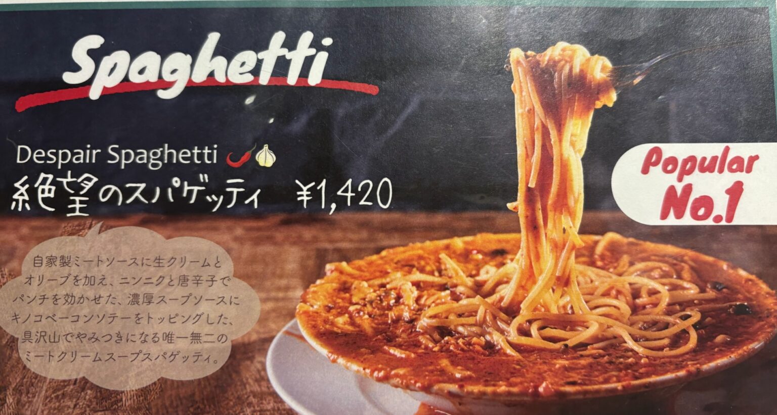 絶望のスパゲッティにはチーズトッピングがお勧め!平日でも予約必須なお店です。